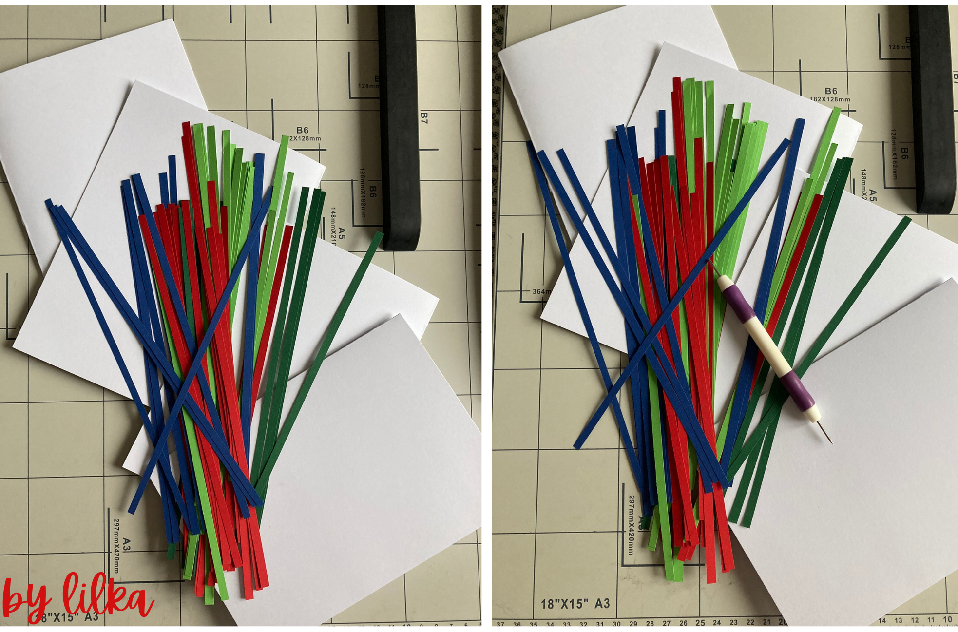 Do wykorzystania quillingowych, małych dzieł wykorzystałam papier z Lidla, podstawą jest biała kartka z bloku technicznego, są też zdobienia z perełek samoprzylepnych (chociaż ja zawsze jeszcze smaruję je magic klejem, bo wiem, że lubią odpadać). Zapraszam, zobaczcie jak wyszły.